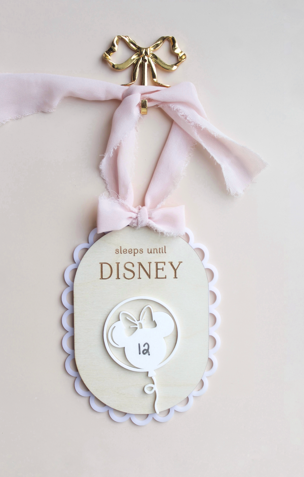 Build the excitement day by day with this enchanting vacation countdown! Crafted with a layered wood base and a dreamy scalloped acrylic border, this piece features a dry erase section to update the countdown as often as you like. This sign adds a touch of wonder to every day leading up to the most magical place on earth!