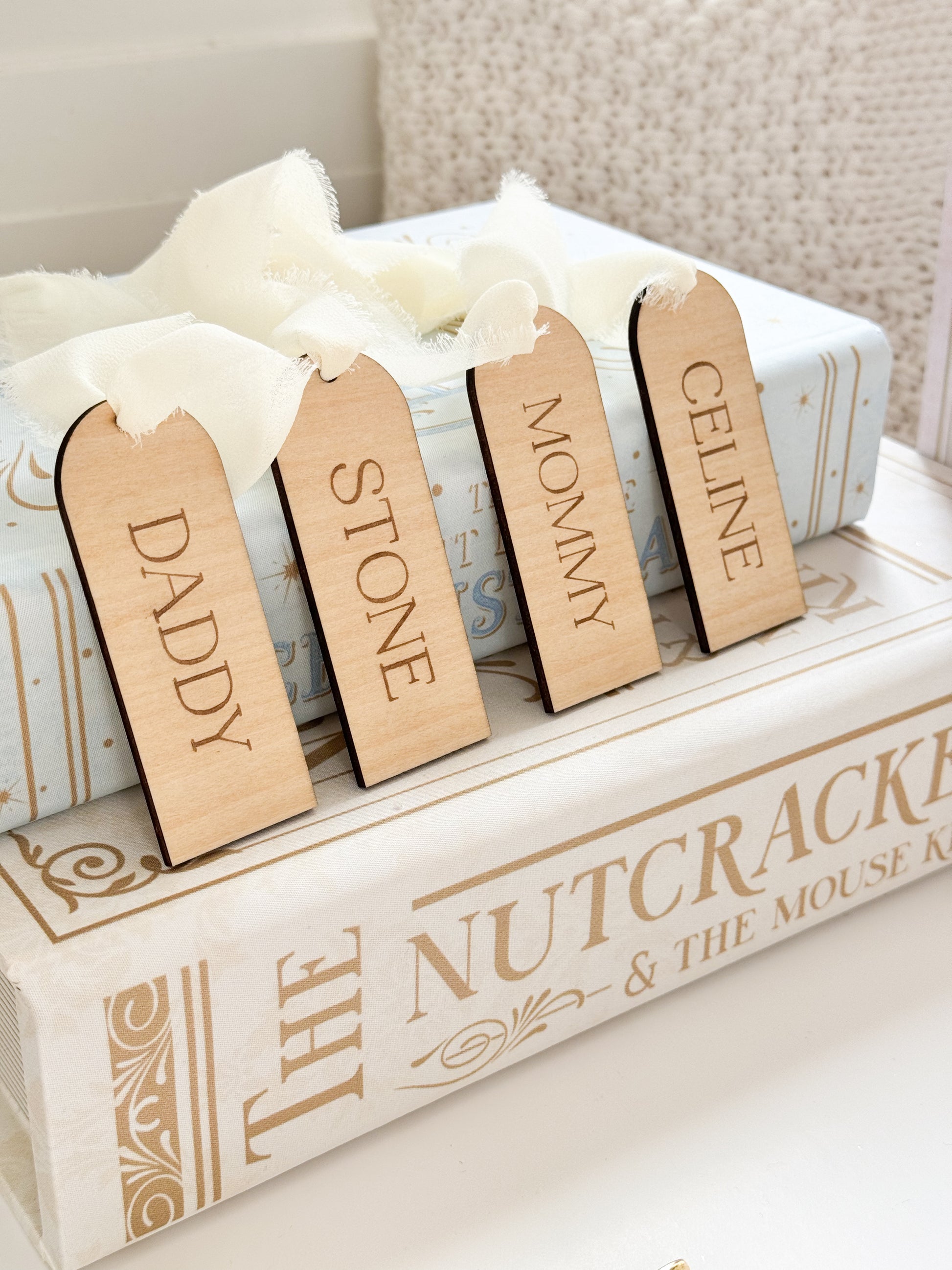 These versatile tags are not only perfect for labeling stockings but can also be used as gift tags, adding a thoughtful and unique touch to presents. The minimalist design ensures they work well with any holiday color scheme, while the engraved details add depth and elegance to your display.