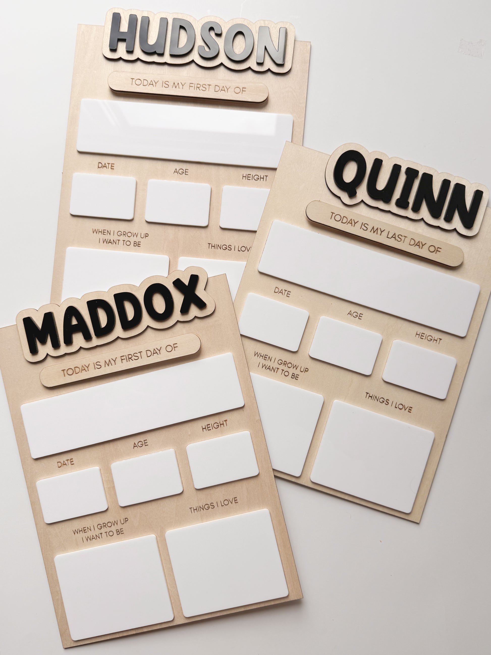 Optional Add-On: Personalize your board for multiple children with extra interchangeable name tags. Each name tag attaches with Velcro, allowing for easy switching between siblings, making this board a practical and timeless keepsake for the whole family. Find this option under "School Boards" titled add a name.