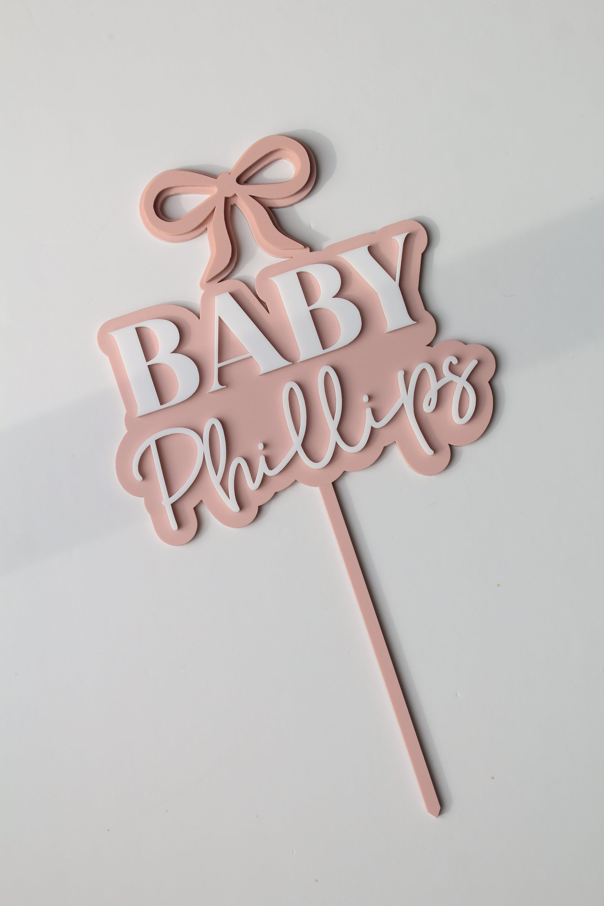Make your baby shower cake even more memorable with our Custom Bow Baby Shower Cake Topper. Crafted from high-quality acrylic in a color of your choice, this elegant topper features a delicate bow design that adds a touch of charm and sophistication to your celebration. Perfect for creating a stunning centerpiece, this topper can be fully personalized with your baby’s name to make your special occasion even more unique.