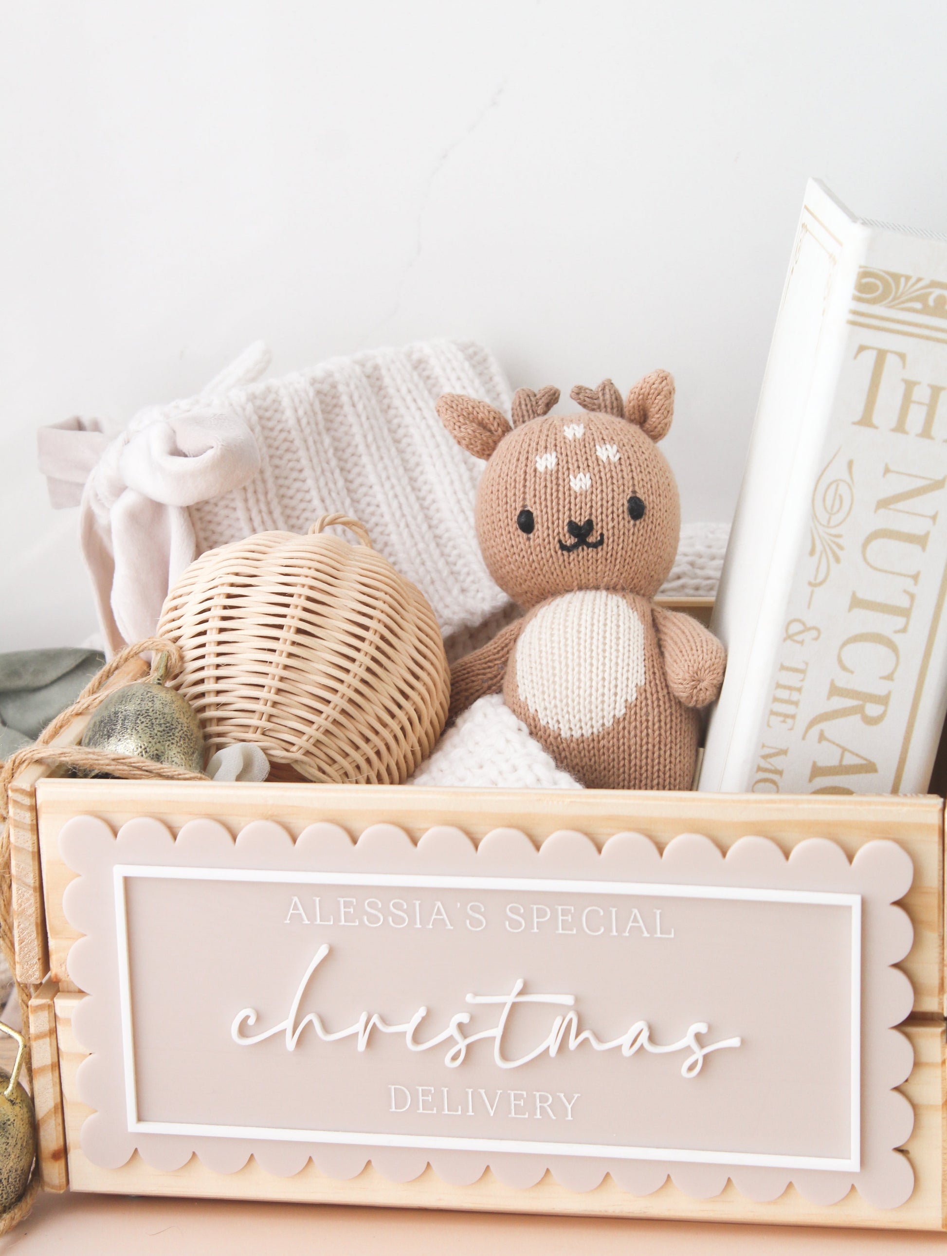 Our Santa Crate Plaques are the perfect finishing touch for your Christmas Eve boxes! Designed to fit perfectly on the small IKEA crates, each plaque adds a festive, personalized touch to your holiday setup. Choose from a white, silver, or gold metallic finish to match your holiday style.