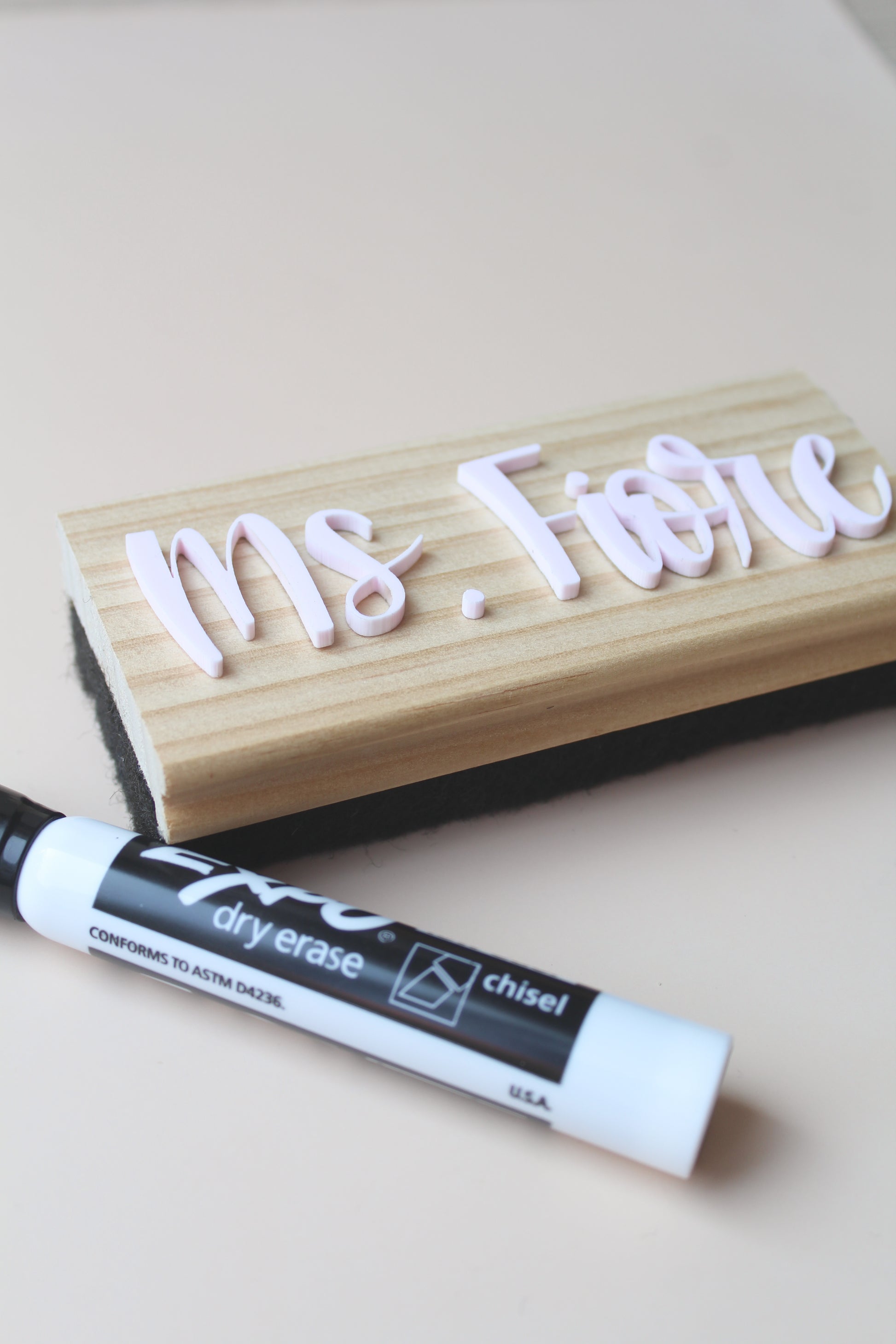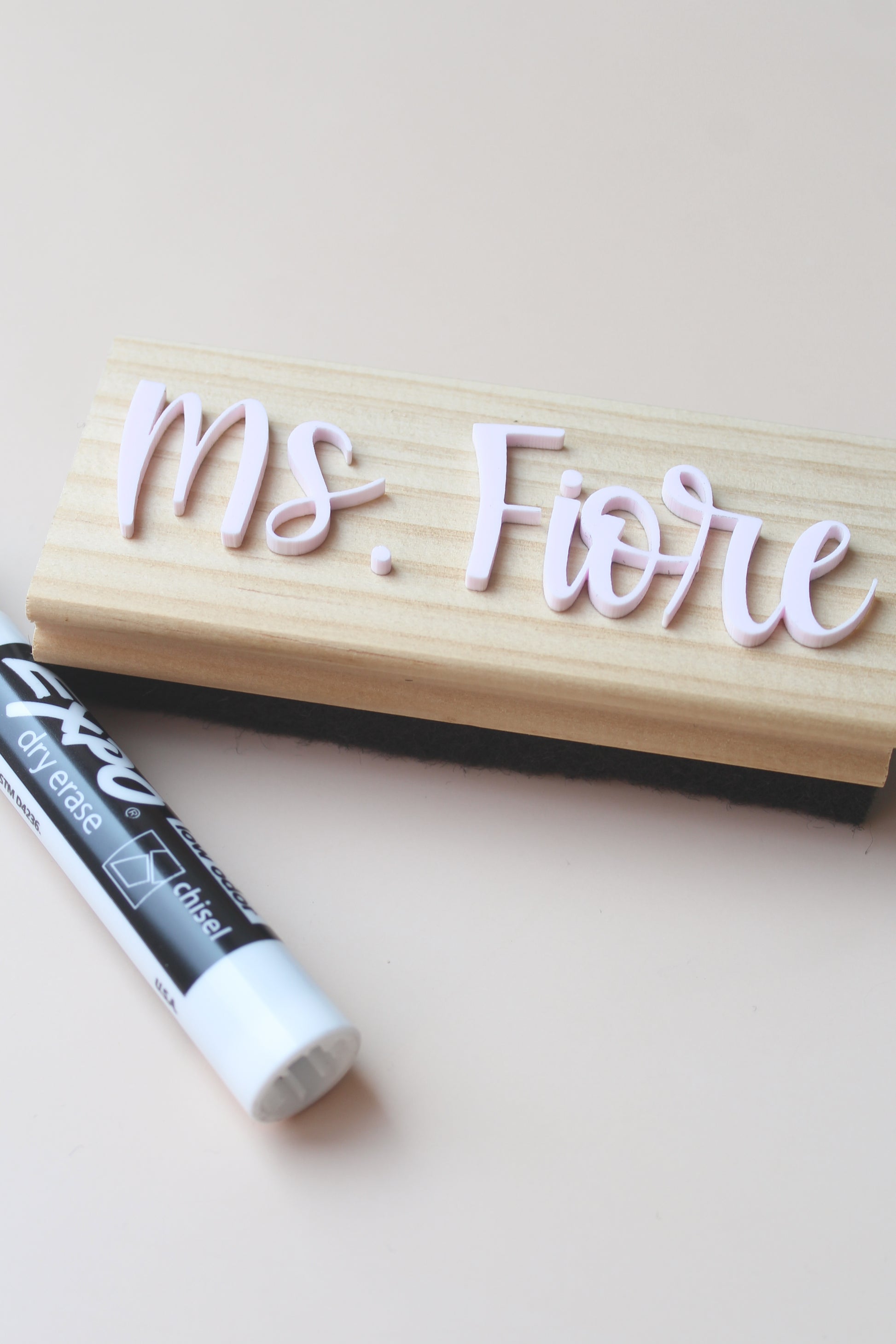 1 personalized whiteboard eraser with custom 3D acrylic name (your choice of colour!)