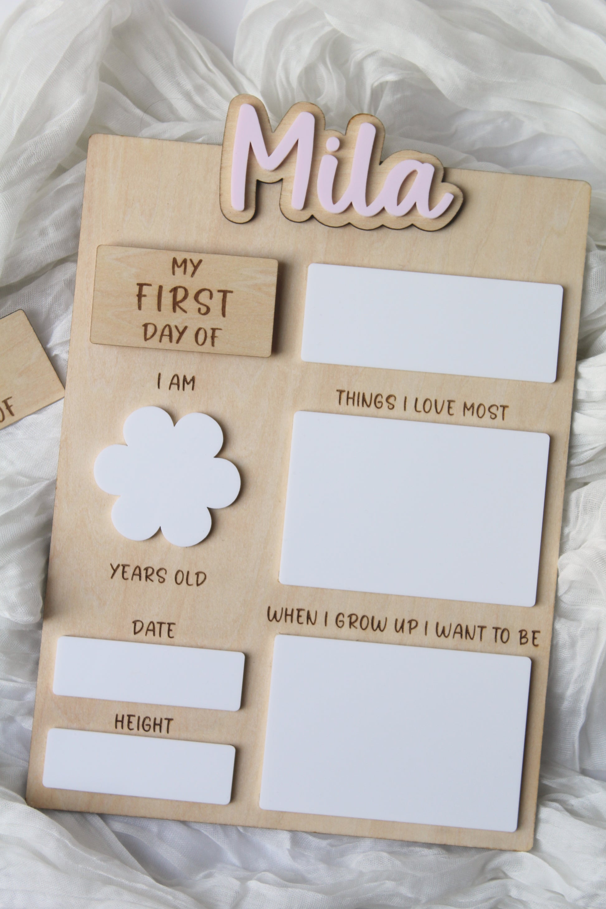 Optional Add-On: Personalize your board for multiple children with extra interchangeable name tags. Each name tag attaches with Velcro, allowing for easy switching between siblings, making this board a practical and timeless keepsake for the whole family. Find this option under "School Boards" titled add a name.