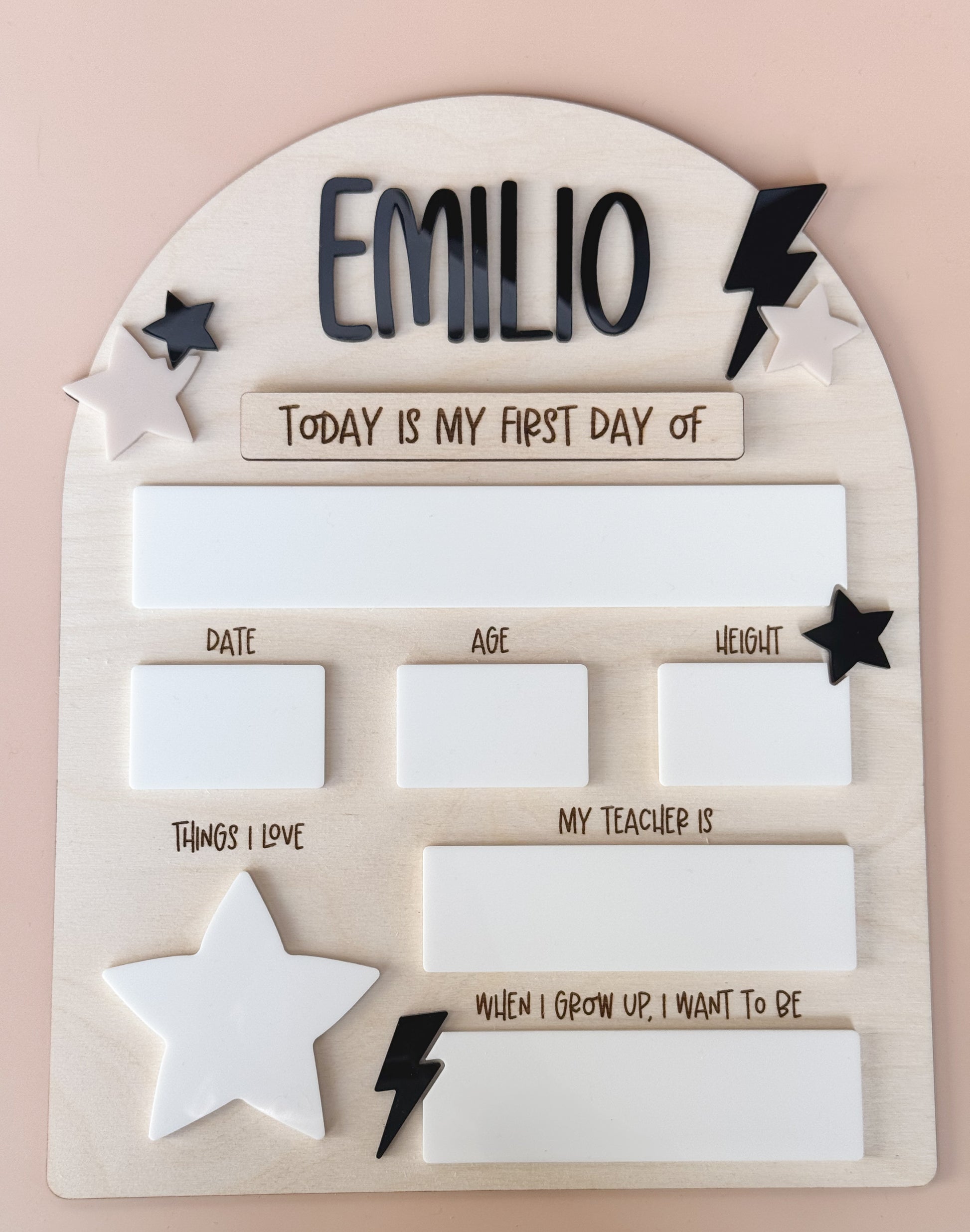 Optional Add-On: Personalize your board for multiple children with extra interchangeable name tags. Each name tag attaches with Velcro, allowing for easy switching between siblings, making this board a practical and timeless keepsake for the whole family. Find this option under "School Boards" titled add a name.