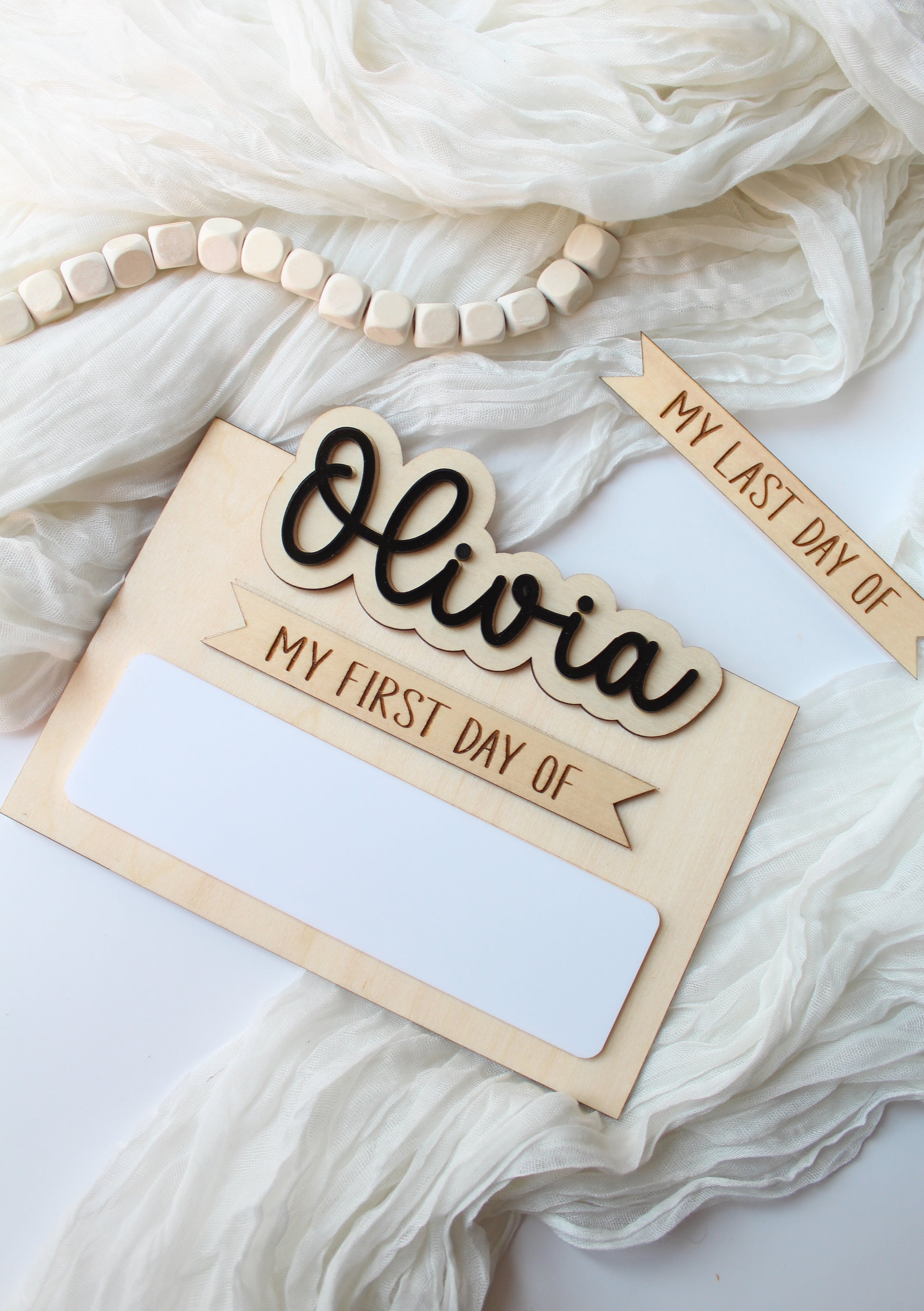 Capture the excitement of each school year with our best-selling, handcrafted Wooden Back to School Board. This personalized, reusable photo prop grows with your child, marking both the First Day and Last Day of school year after year. Featuring a sturdy wooden base and accented with layered acrylic details, this dry erase board adds a charming touch to your child’s educational milestones.