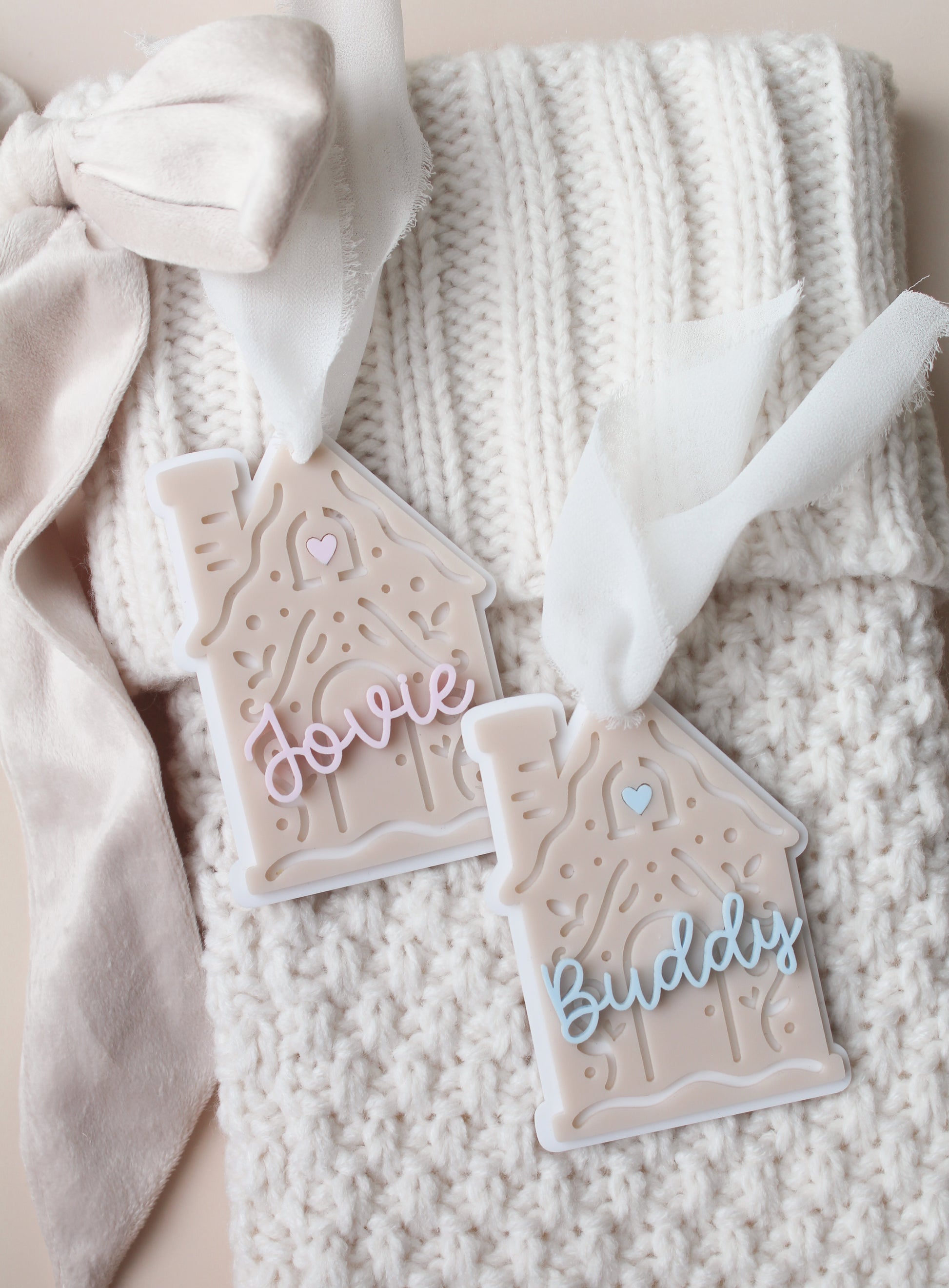 Our beloved gingerbread ornaments are back, ready to bring holiday magic and festive cheer to your tree! Personalize your ornament with your child’s name in your choice of colour, and add a matching heart at the house’s peak for a special, charming touch.
