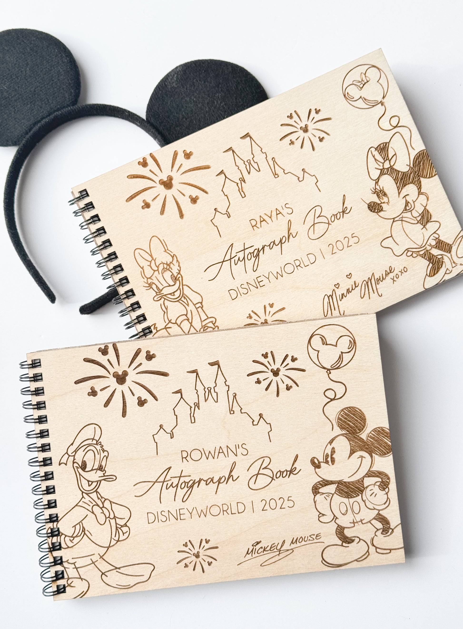 Capture memories from your magical adventure with our Personalized Wooden Autograph Book! This beautifully engraved book is the perfect companion for theme park lovers, offering a sturdy wood cover and custom name engraving to make it uniquely yours.