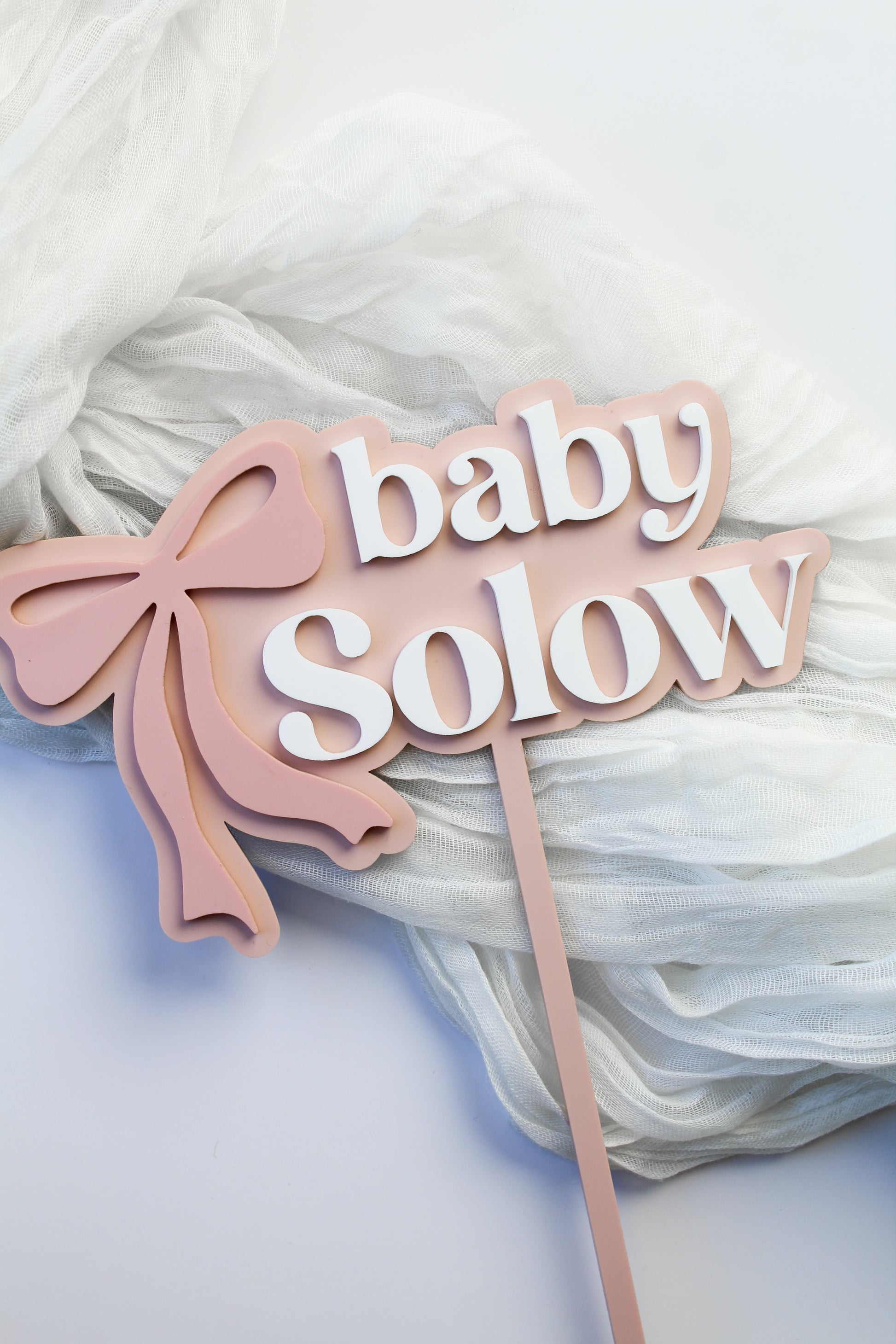 Make your baby shower cake truly unforgettable with our Custom Bow Baby Shower Cake Topper. Crafted from high-quality acrylic, this elegant topper features a delicate bow design that brings a touch of sophistication and charm to your celebration. Fully customizable with your baby’s name, this topper adds the perfect personal touch to your cake, ensuring your special day stands out.
