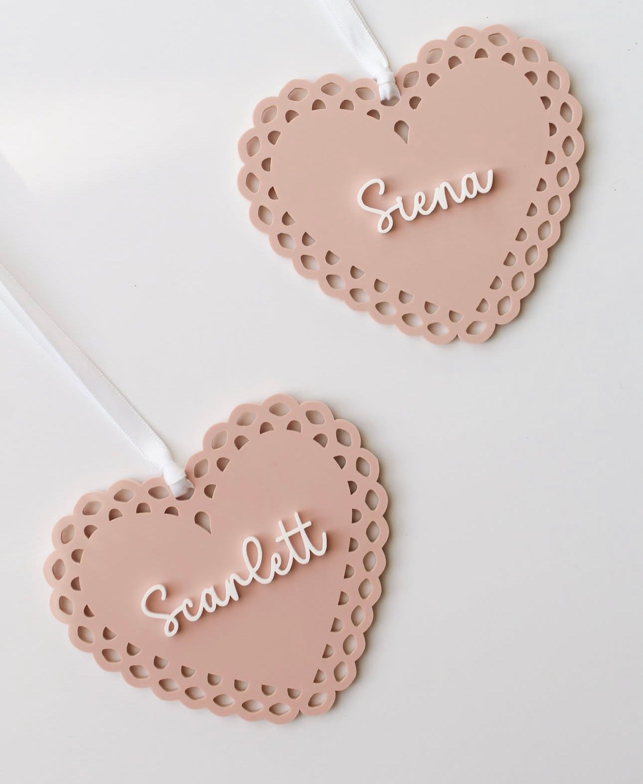 Each tag features your choice of coloured acyclic and a customized 3D cursive white acrylic name for a personal touch.
