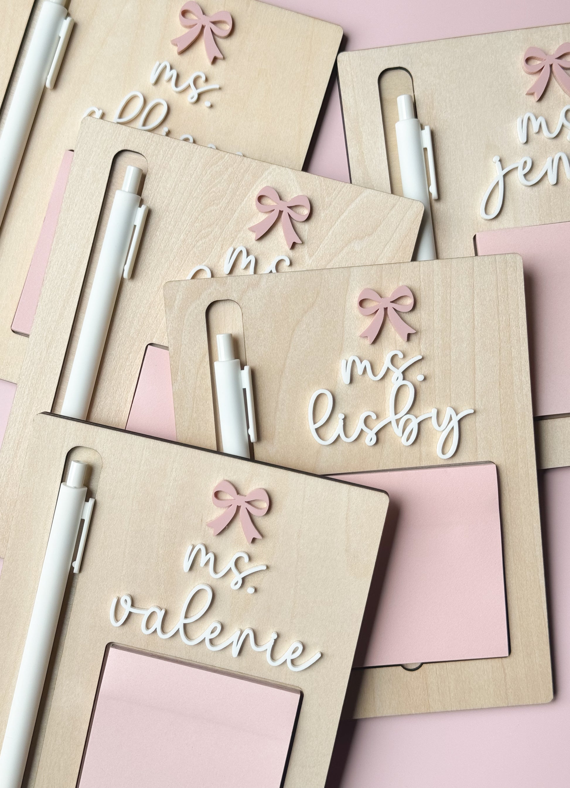Teacher Gift - Custom Sticky Note Holder & Pen (Bow Style)