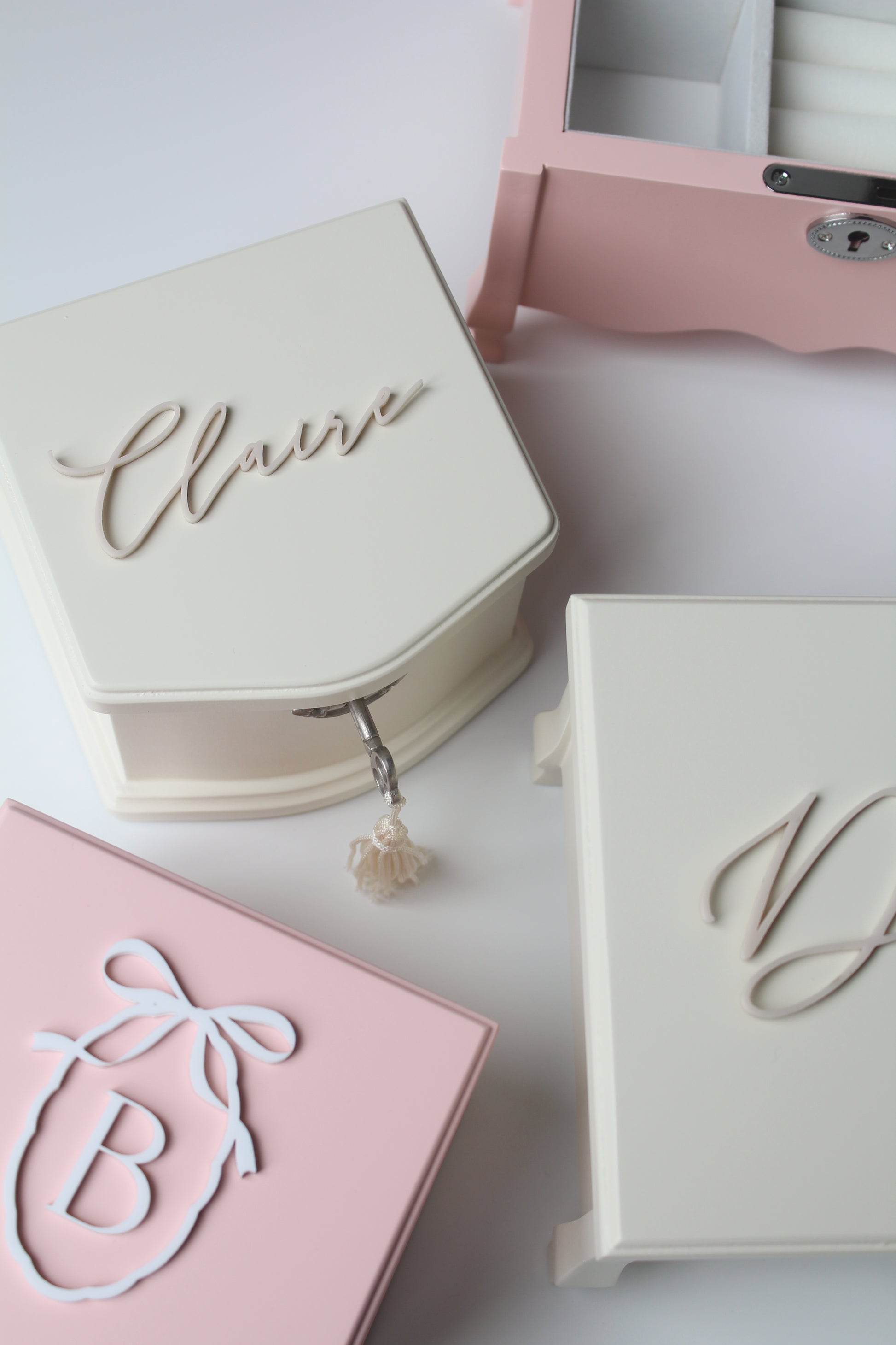 Keep your little one’s treasures safe in style with this wooden jewelry box made just for them! Featuring custom acrylic detailing with their name or initials, it’s a charming spot for rings, bracelets, tiny trinkets, and special keepsakes.